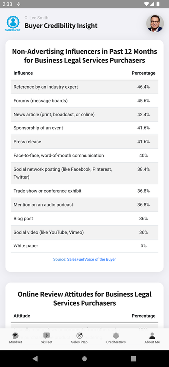 SalesCred® 还通过提供即时会议准备报告来节省销售人员的售前研究时间,该报告提供有关公司优先事项和与会关键决策者的关键事实和见解。该应用程序基于亚马逊国际畅销书《SalesCred: How Buyers Qualify Sellers》,并得到了一家帮助超过10万销售人员提高信誉的公司的支持。